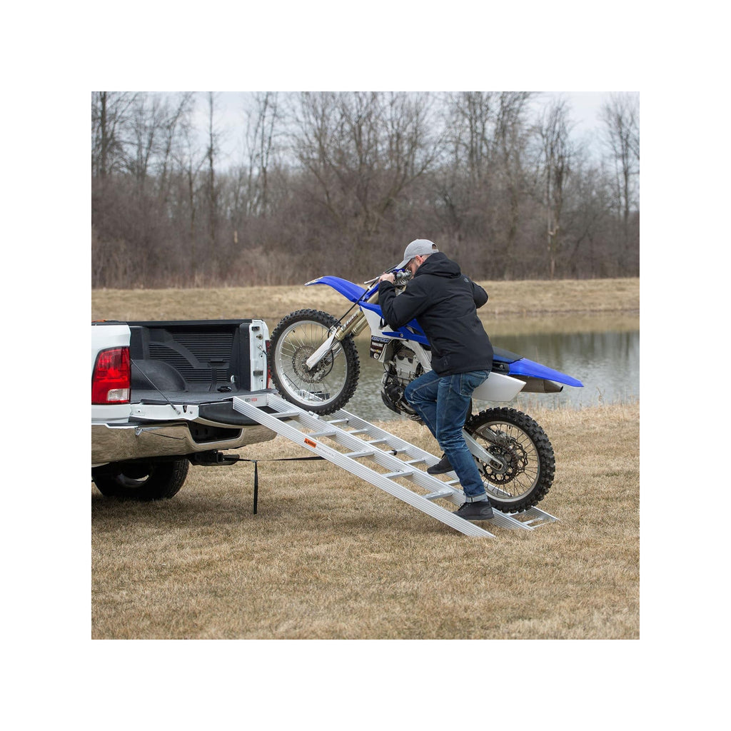 - يتيح الجمع بين المنحدر والخطوة المشي الآمن أثناء تحميل الدراجة النارية