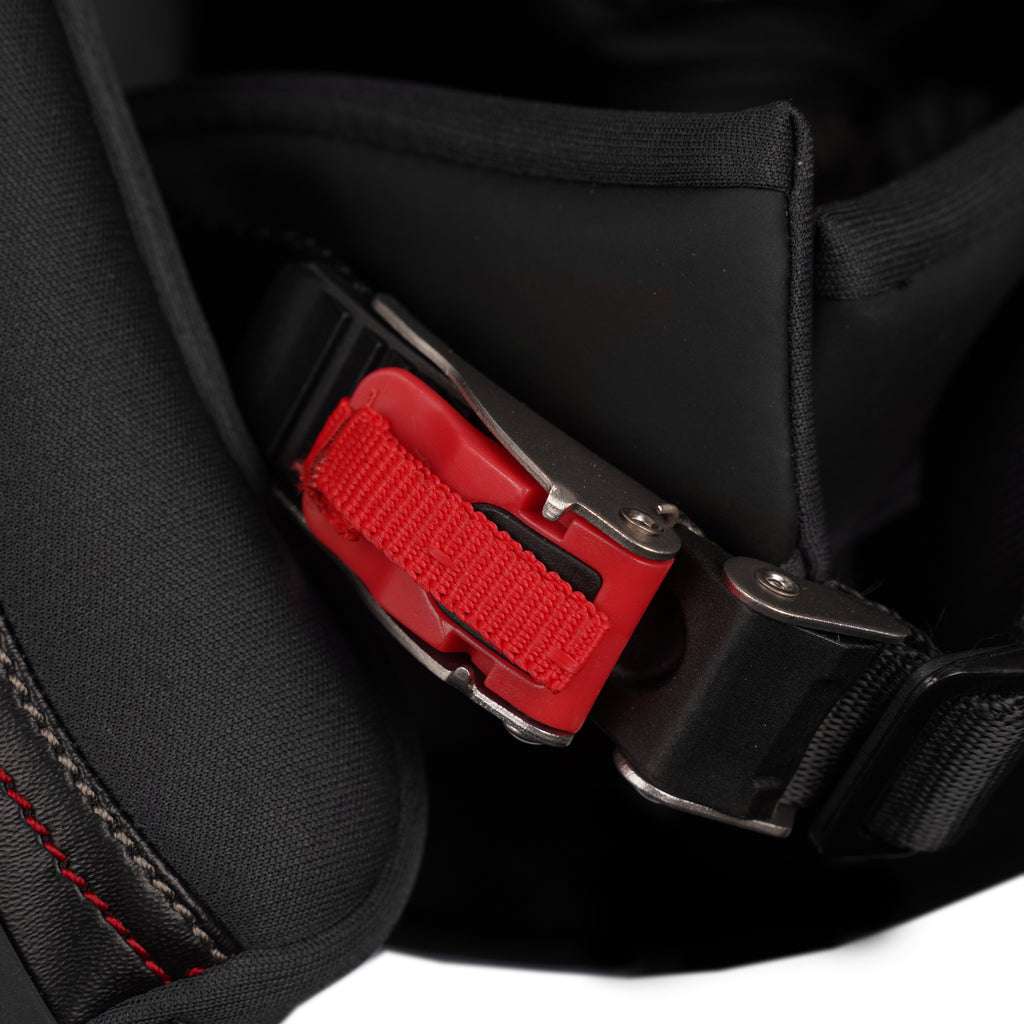 - حزام ذقن مزدوج على شكل حرف D مع حافظة مبطنة تضمن تثبيتًا آمنًا وسهلاً