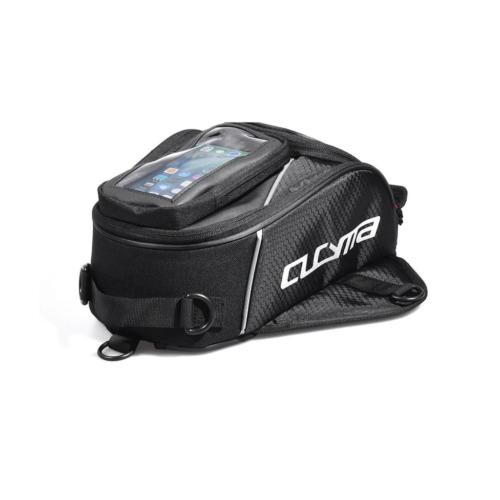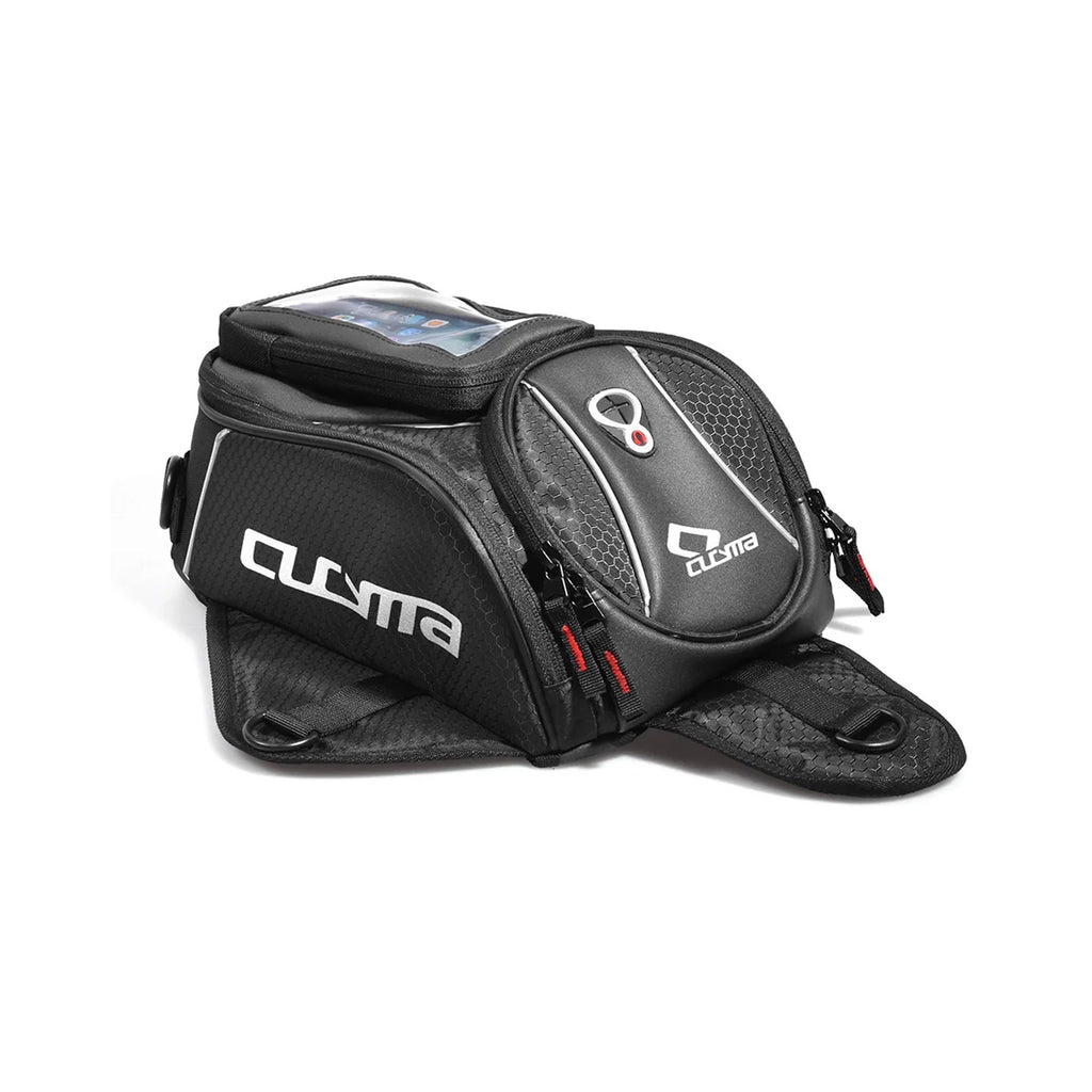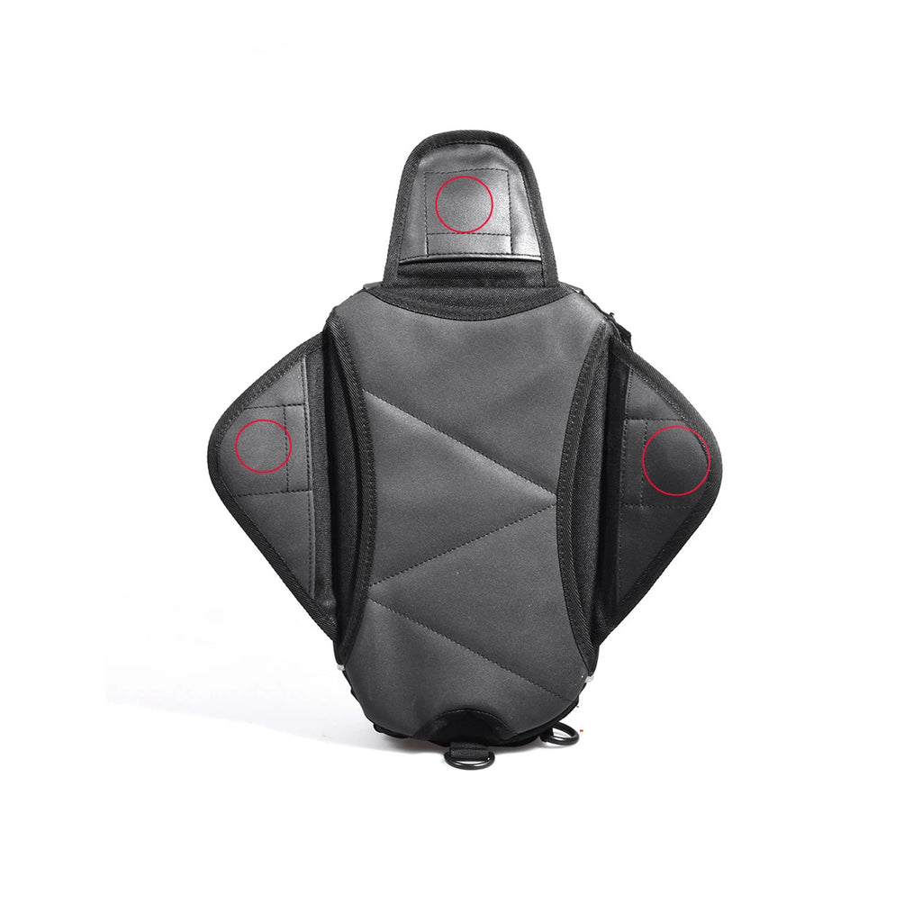 • تثبيت آمن: 3 مغناطيسات قوية تثبت الحقيبة بشكل آمن على خزان الدراجة النارية. حزامان إضافيان مزودان بأبازيم لتعزيز الاستقرار أثناء الركوب.