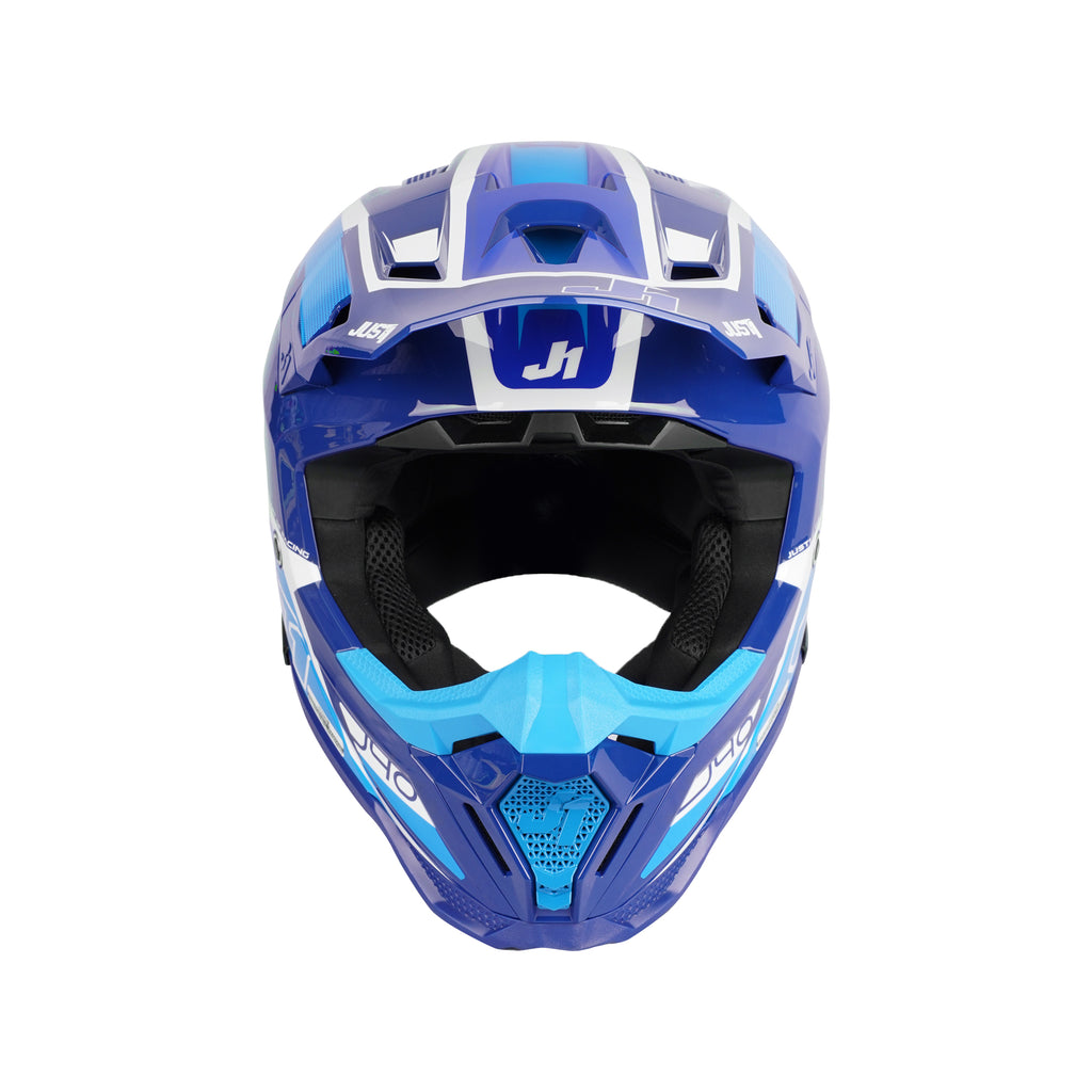 خوذة JUST1 J40 Flash  باللون الأبيض والأزرق - خوذة معتمدة من ECE وDOT