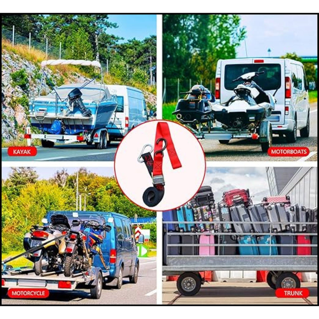 أمّن دراجاتك النارية ومركباتك الرباعية ومعداتك باستخدام أحزمة الربط الحلقية المتينة من EBIKER بطول 6 أقدام. تتميز بحزام من النايلون المُختبر بوزن 2400 رطل وخطافات مغلفة بالمطاط لضمان أقصى درجات الأمان.