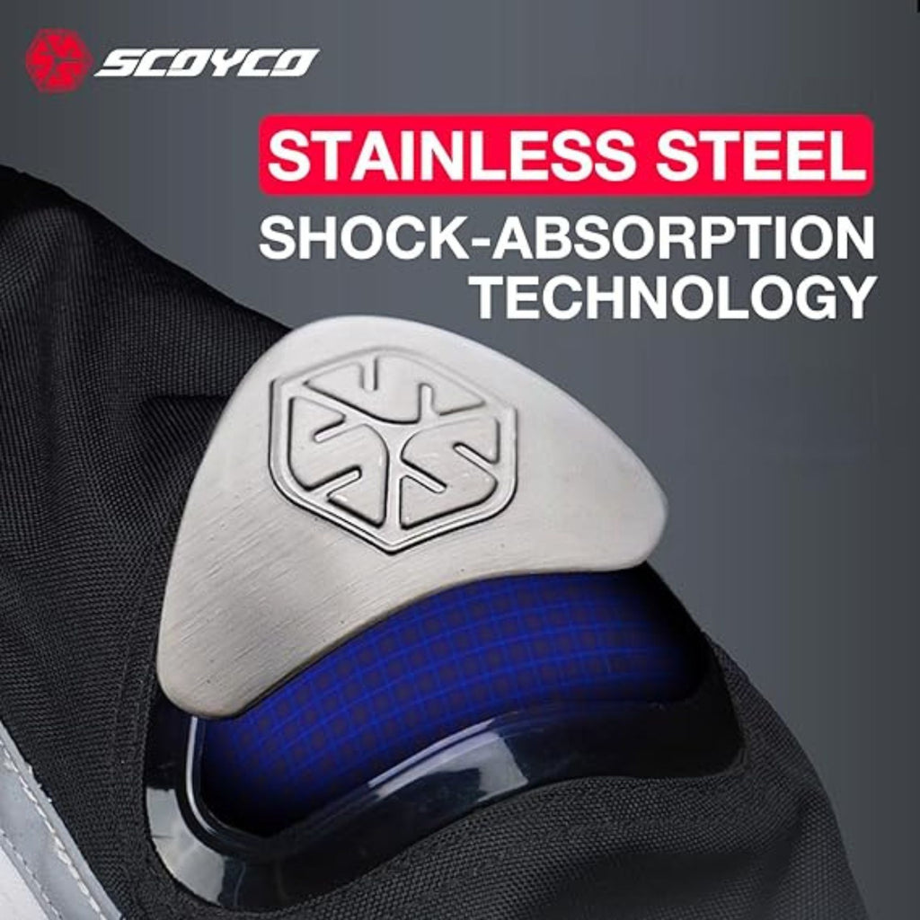 The SCOYCO JK103-2 (BK/GRY) is a spring/summer performance riding jacket built from 600D abrasion-resistant panels and breathable mesh, featuring CE-level protectors and adjustable fit for commuter, sport and touring riders.