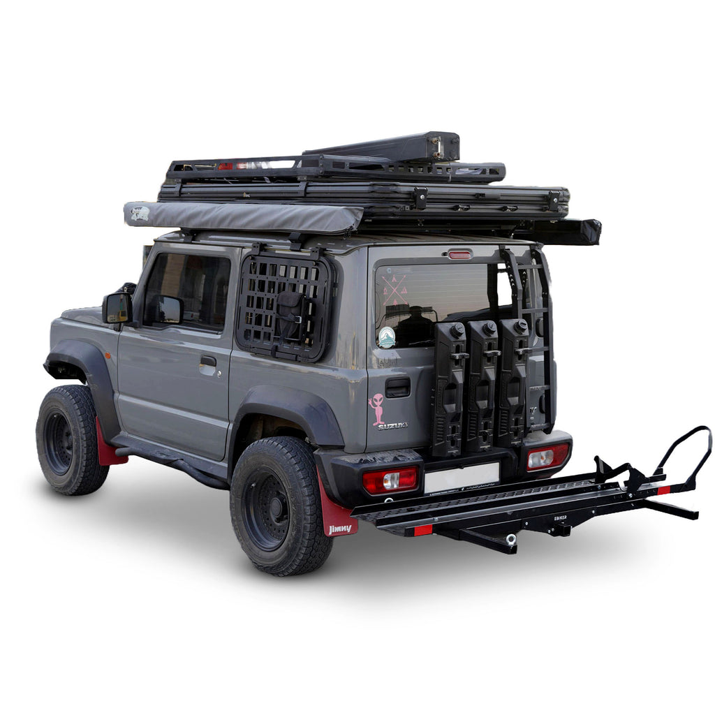 • Integrated Loading Ramp: Effortlessly roll your motorcycle on and off. Ramp stores under the carrier.
